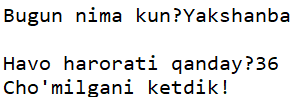 kun = input("Bugun nima kun?")