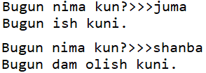 kun = input("Bugun nima kun?>>>")