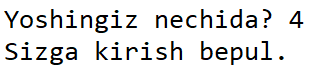 yosh = int(input('Yoshingiz nechida? '))
